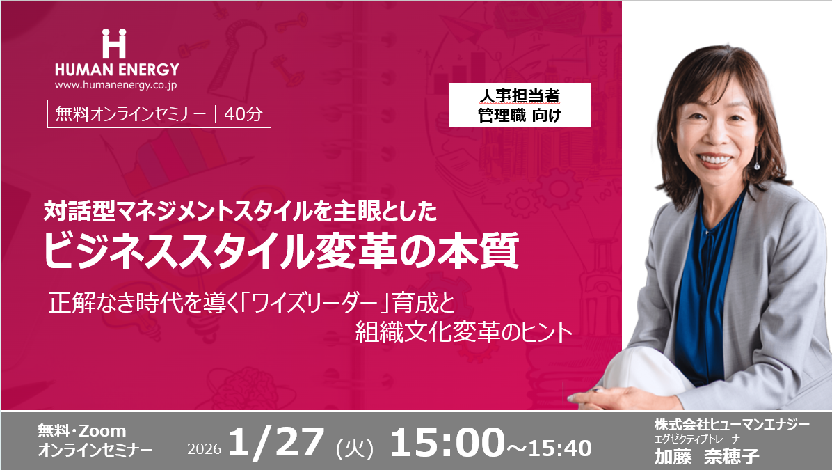 【無料セミナーご案内】対話型マネジメントスタイルを主眼としたビジネススタイル変革の本質 ~正解なき時代を導く「ワイズリーダー」育成と組織文化変革のヒント~