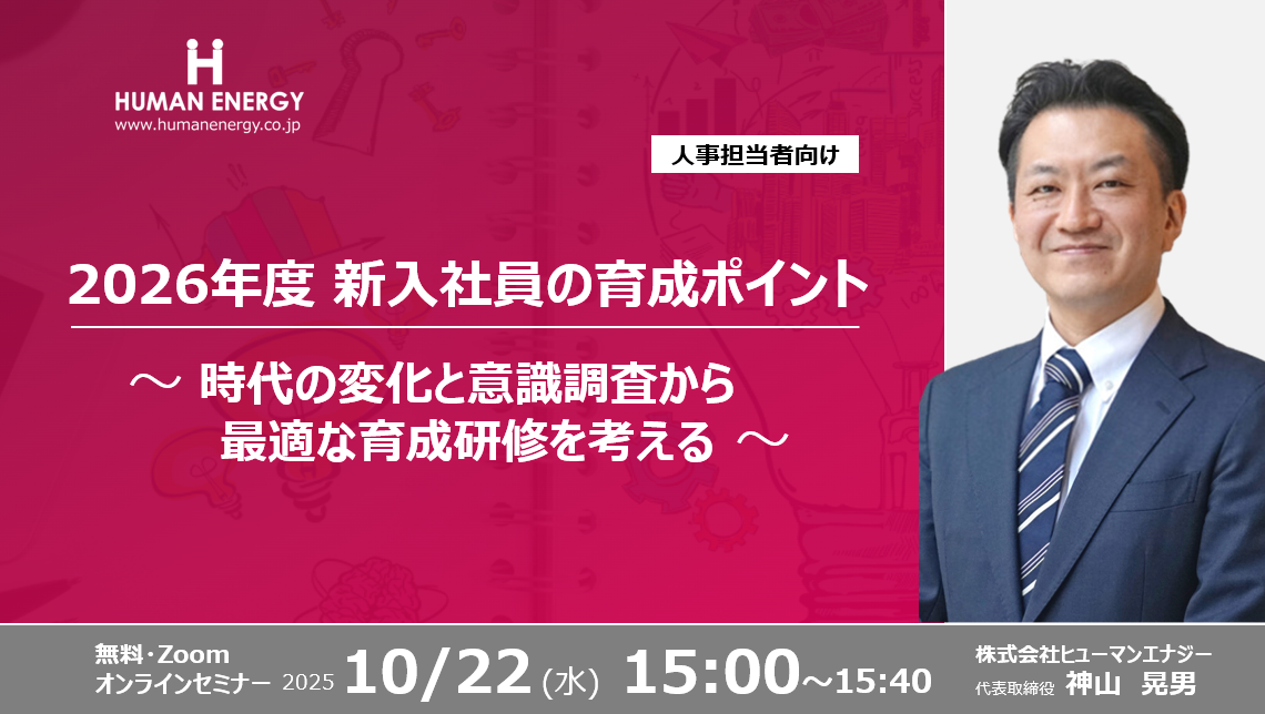 採用環境も働き方も、変化の速度が増しています。新入社員研修担当の方からは、年を追うごとに新入社員研修が難しくなってきている、入社当初から自主性や積極性が低く、どう研修の効果を出したらいいのか悩んでいる、という声をよく伺います。