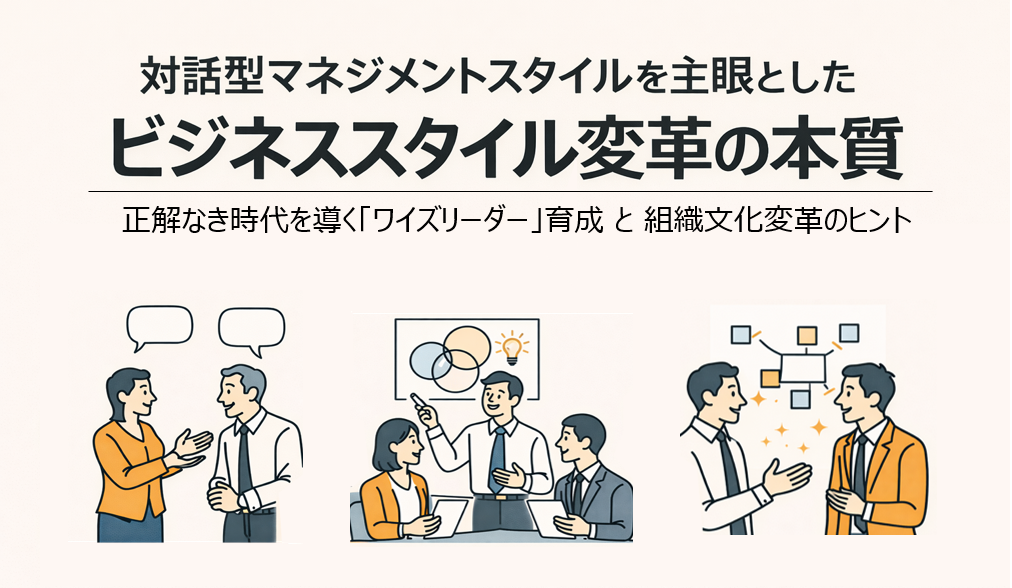 若手の離職、沈黙する会議、疲弊する管理職――こうした課題の背景には、制度や施策だけでは埋まらない「マネジメントスタイルの不一致」があります。本コラムでは、従来の指示型マネジメントが通用しにくくなった理由を整理し、いま求められている「ワイズリーダー」とは、そしてその要となる対話型マネジメントスタイルのリーダ育成を目的とした「ビジネススタイル変革研修」の全体像を、実例を交えてご紹介します。